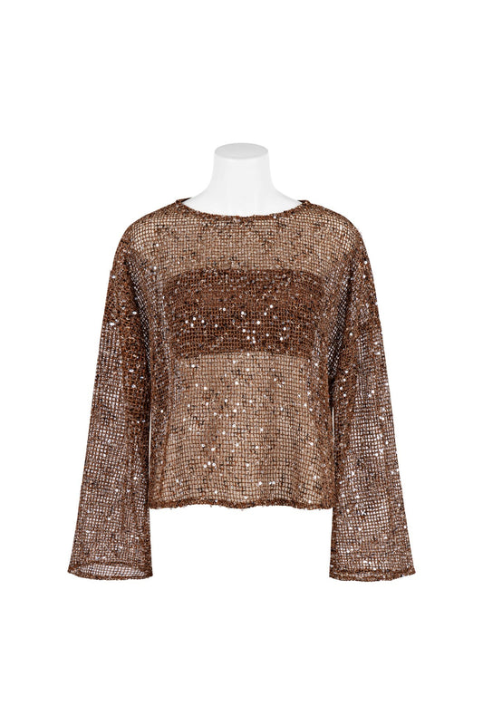 AL8567TA SEQUIN KNIT LONG SLEEVE SLEEVE TOP