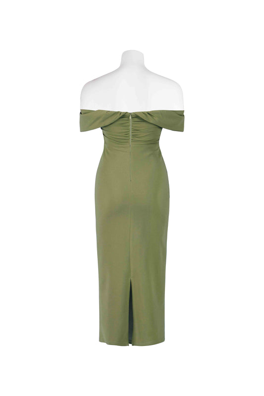 EE8813MA OLIVE OFF SHOULDER MIDI DRESS