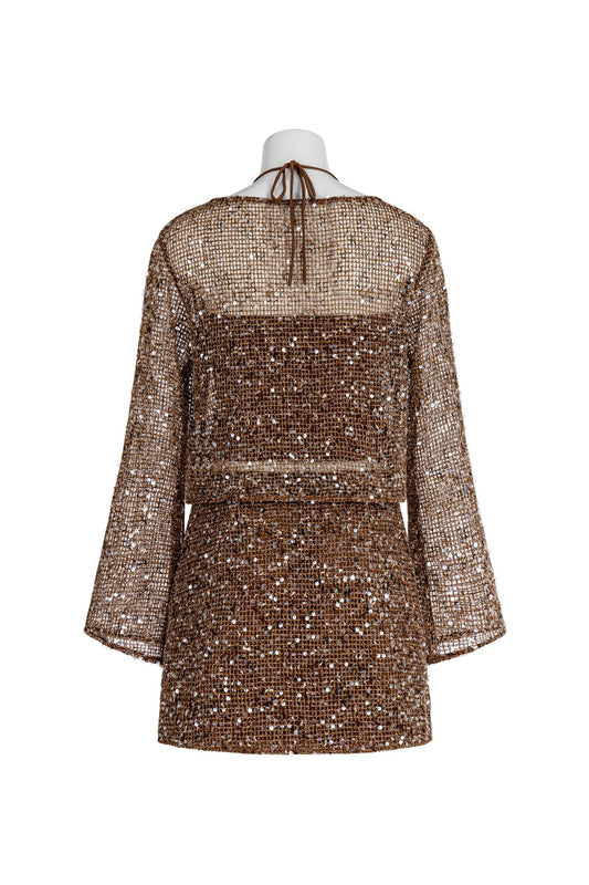 EW8321T-SA MOCHA SEQUIN KNIT TOP AND MINI SKIRT SET