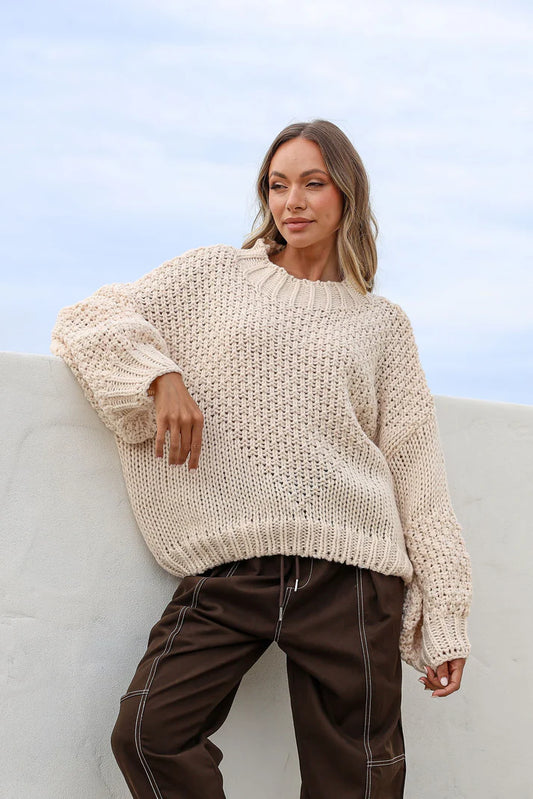 KL0626-V BEIGE GETAWAY BLOCK KNIT