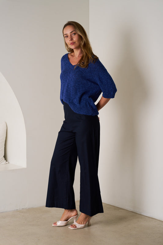 KEW121901 NAVY ZAYA KNIT TEE