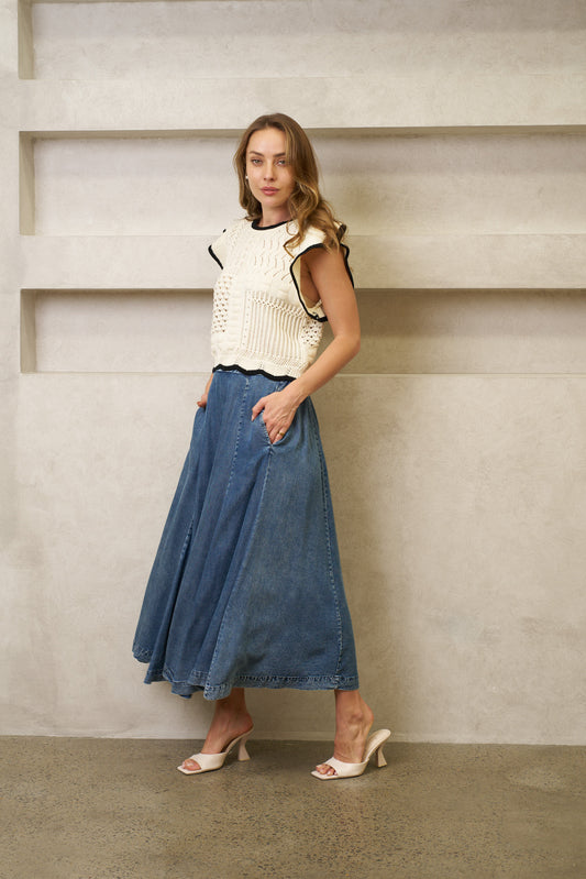 KEW122301 CREAM/BLACK YASMIN KNIT TOP