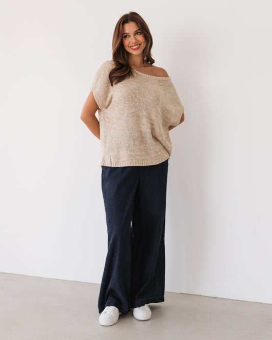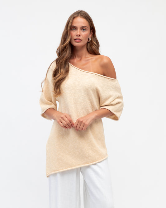 LOL70654 NATURAL CALLIE ASYM KNIT TOP