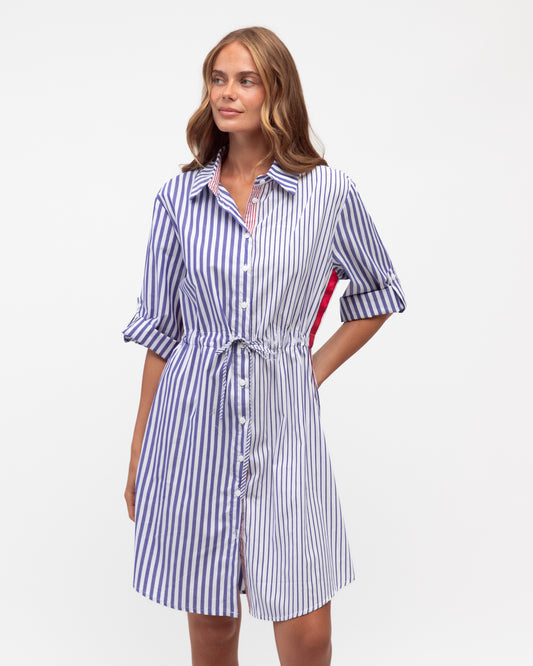 LOL70930 NAVY/RED MULTI STRIPE SHIRT DRESS