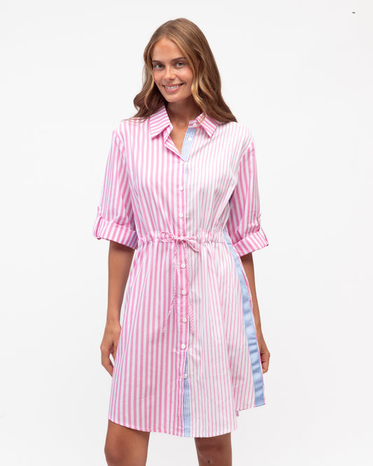 LOL70930 PINK/BLUE MULTI STRIPE SHIRT DRESS
