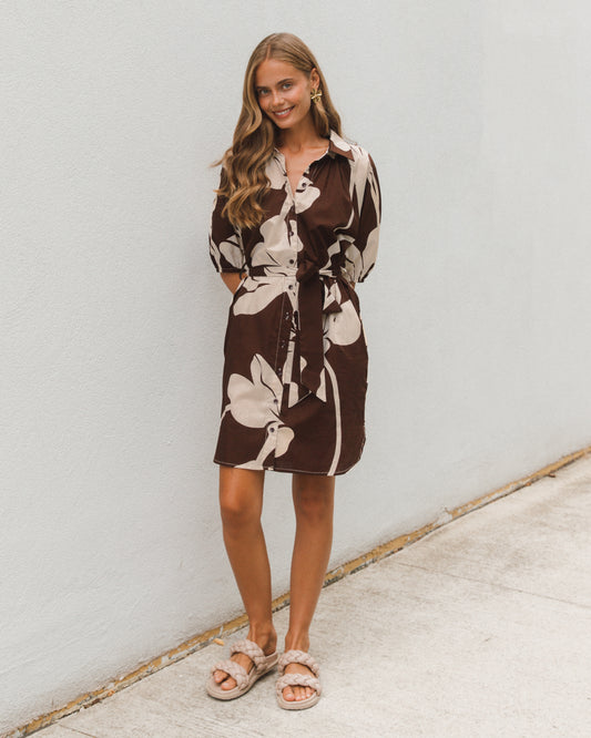 LOLE22243-1 CHOCOLATE BLOOM SHORT DRESS