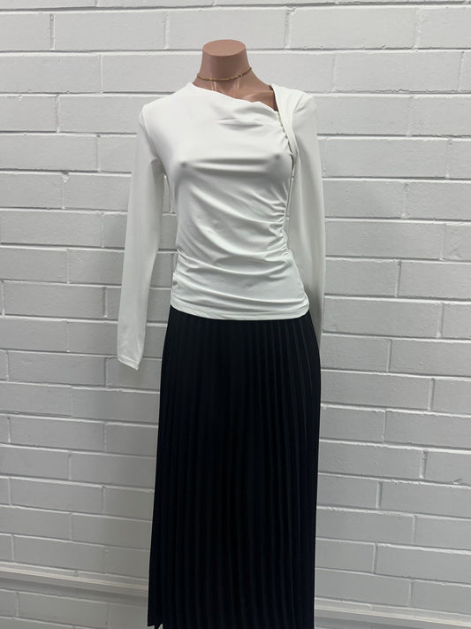 83963 WHITE ASYMMETRIC LONG SLEEVE TOP