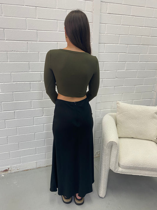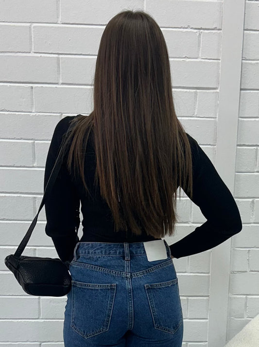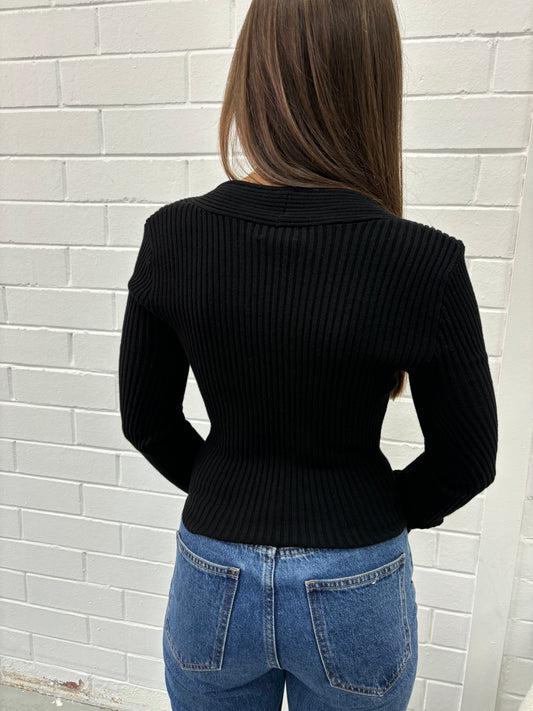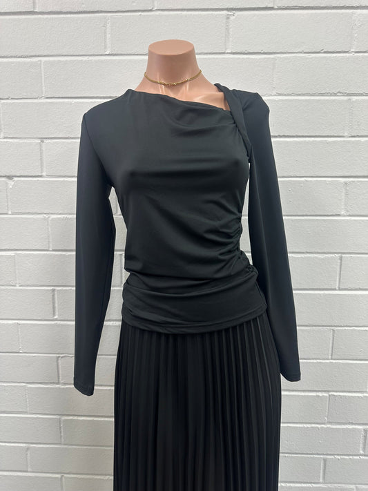 83963 BLACK ASYMMETRIC LONG SLEEVE TOP