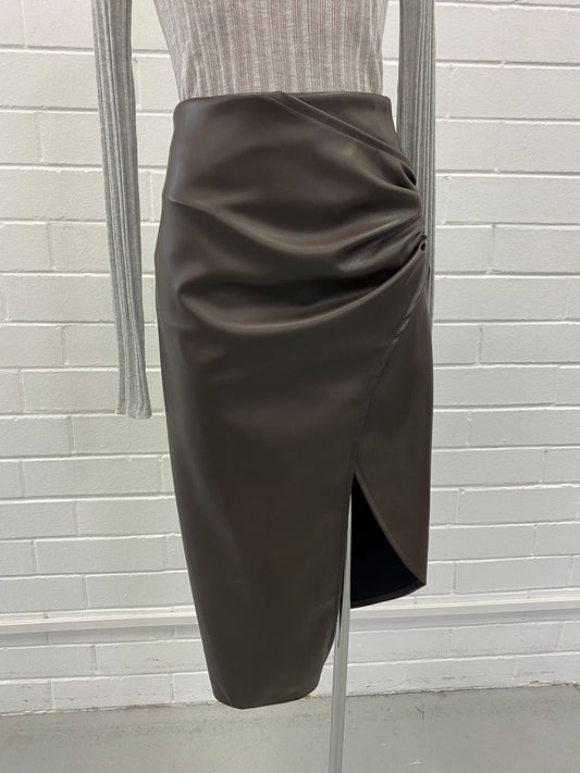 83980 CHOCOLATE PU LEATHER MIDI SKIRT