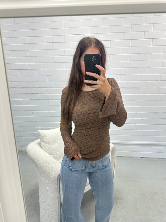 84053 CHOCOLATE FLORAL LACE LONG SLEEVE TOP