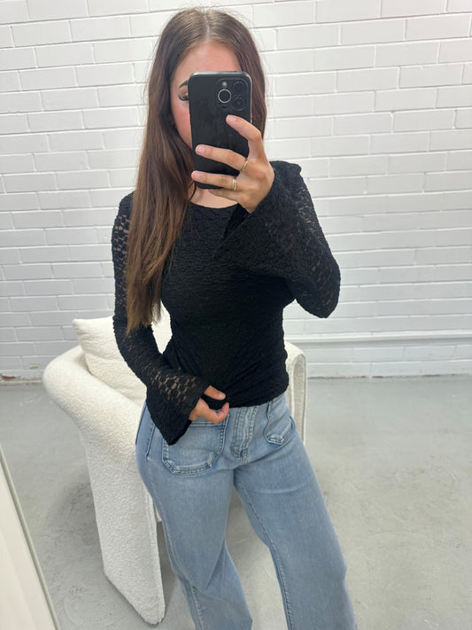 84053 BLACK FLORAL LACE LONG SLEEVE TOP