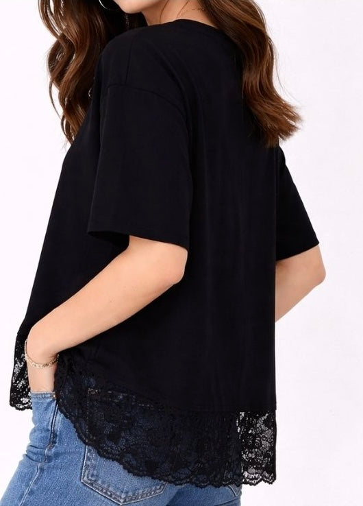 LOL71151 BLACK LACE TRIM TEE