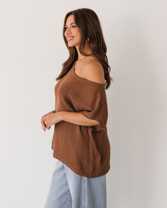 LOL71115 CHOCOLATE OFF SHOULDER KNIT TOP
