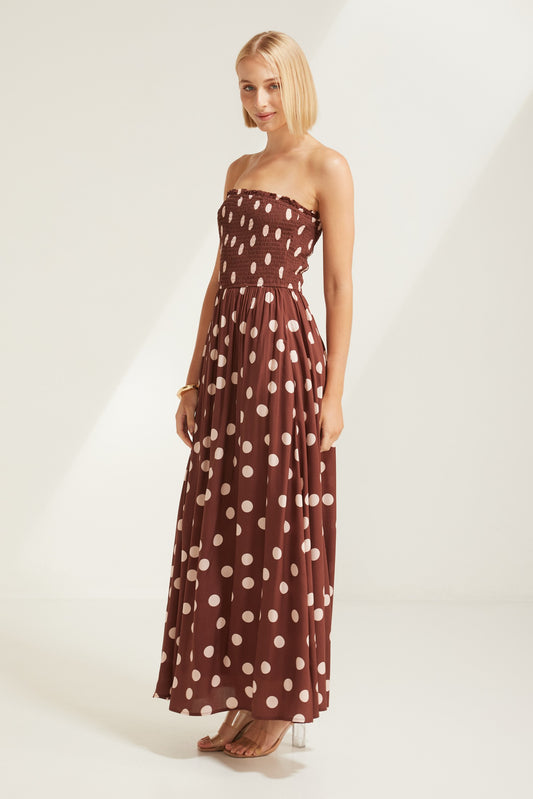 TW4865 CHOC/PINK ROSALIE POLKA DOT MAXI DRESS